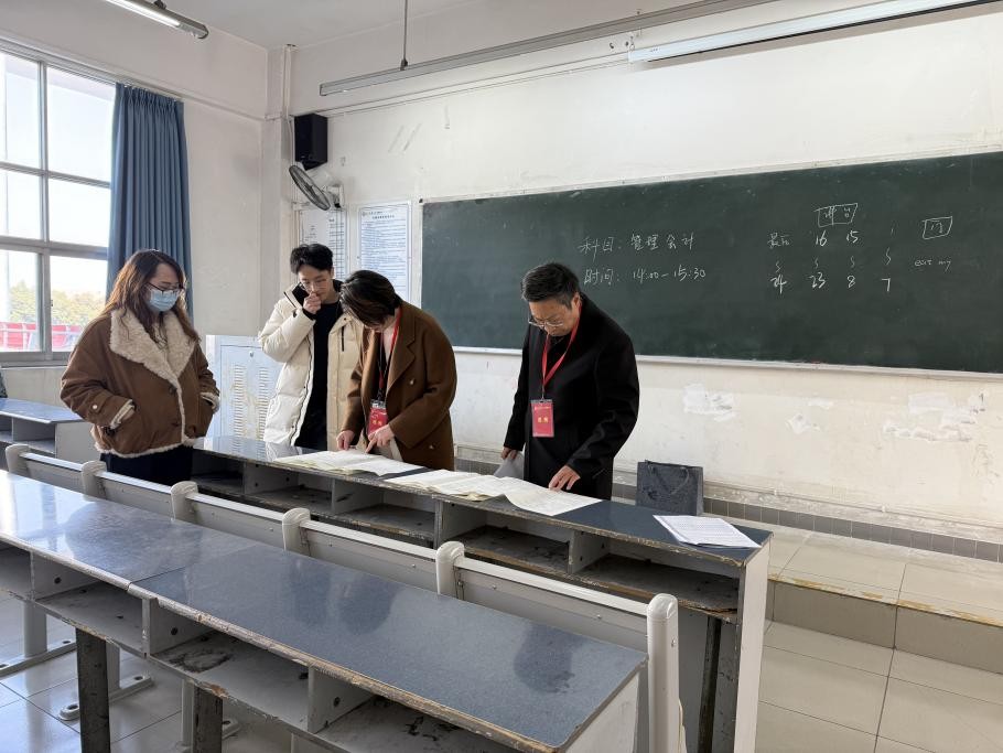 为严肃考风考纪,规范考试管理,筑牢人才培养质量防线,1月19日至1月20日,教务处副处长毛敏、史勤刚带队在双校区组织开展大一学生期末考试专项巡考工作。以全方位、全流程监督,确保考试工作平稳有序推进,为新生营造诚信应考、公平竞争的良好环境。本次巡考重点围绕考场秩序维护、监考教师履职、考生应考状态、考场环境布置等关键环节进行细致检查,严格排查携带手机、智能设备及违禁资料等违纪风险,全程监督考试各环节规